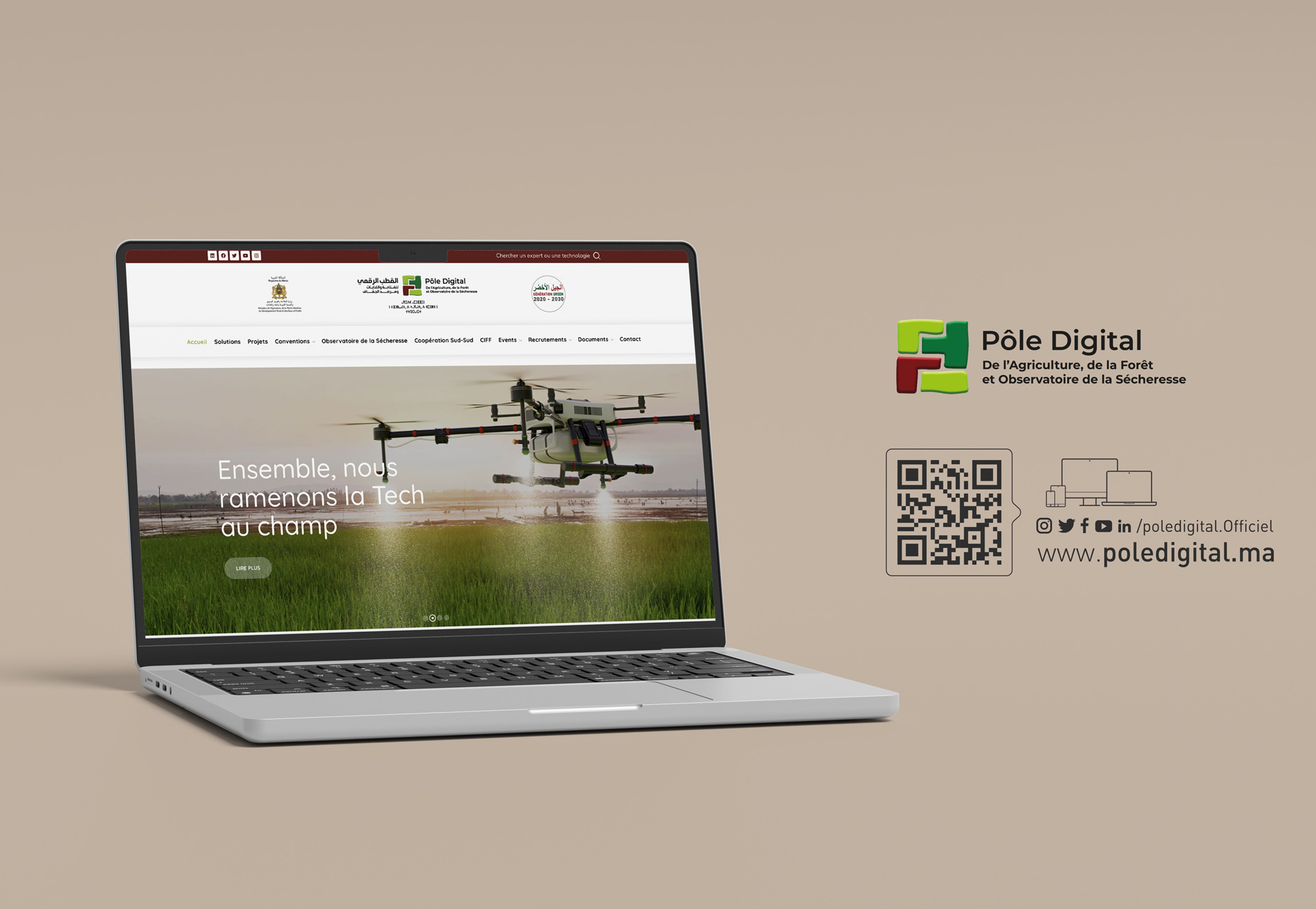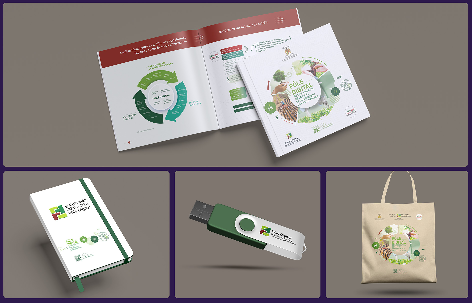 Institution publique à vocation stratégique, le Pôle Digital de l’Agriculture, de la Forêt et de l’Observatoire de la Sécheresse œuvre à la transformation numérique des secteurs agricoles et forestiers, et à la surveillance continue des indicateurs climatiques. Pour accompagner cette mission d’intérêt général, le pôle a entrepris une refonte complète de son écosystème de communication, dans le but de renforcer sa lisibilité, sa crédibilité et sa capacité de vulgarisation scientifique. L’enjeu : traduire graphiquement une expertise technique en une communication accessible, cohérente et moderne.